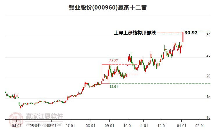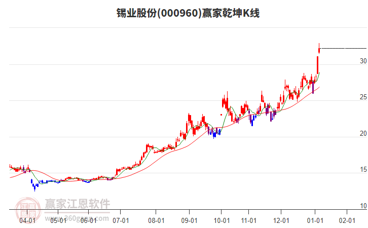 錫業(yè)股份今日漲停,突破極反通道強(qiáng)勢(shì)通道線