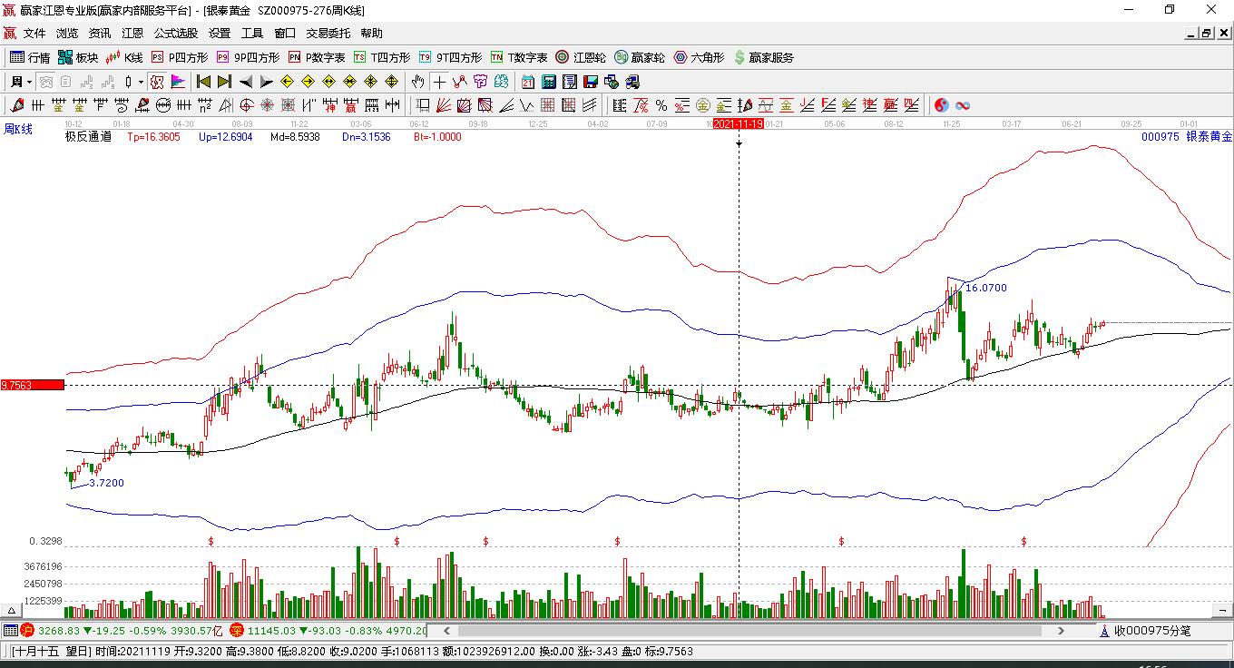 依據(jù)贏家江恩極反通道趨勢工具展示,本周收盤價29.53,跌破強勢通道線30.4573,短期走弱,極反通道規(guī)則顯示,失守一線,看低一線,下方支撐關注生命線21.0296,如延續(xù)下跌趨勢,將向下尋找生命線支撐。