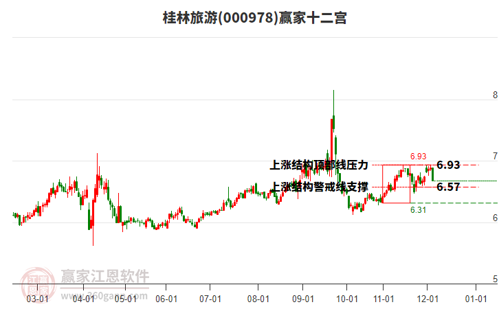000978桂林旅游根據(jù)贏家江恩極反通道趨勢(shì)工具展示,上方壓力位7.1333,下方支撐位6.5704。000978桂林旅游處于贏家江恩多頭中期回調(diào)形態(tài),12月4日發(fā)出江恩筑頂信號(hào)后,經(jīng)過(guò)13日,今日再