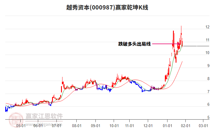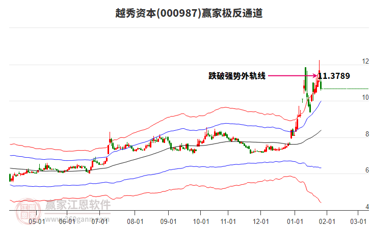 依據(jù)贏家江恩系統(tǒng)趨勢工具極反通道分析判斷越秀資本000987運行在生命線以下弱勢區(qū)域,根據(jù)規(guī)則該股短線輕倉參與,股價跌至弱勢外軌線后波段再結合其它工具信號建倉。應用口訣是:生命線上強勢走,生命線下難抬頭;紅黃兩條外軌線,壓力支撐顯勢頭。