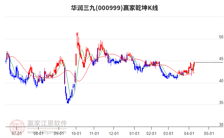000999華潤三九處于贏家江恩多頭主線形態(tài),今日重心上移,短期持續(xù)上漲,從1月29日形成中期底分型后,行情經(jīng)歷一波上漲,突破前高形成中期初次筑底信號,長期處于多頭上漲趨勢。000999華潤三九根據(jù)贏
