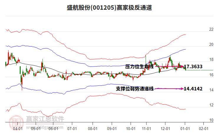 依據(jù)贏家江恩系統(tǒng)趨勢(shì)工具極反通道分析判斷盛航股份001205運(yùn)行在生命線以下弱勢(shì)區(qū)域,根據(jù)規(guī)則該股短線輕倉(cāng)參與,股價(jià)跌至弱勢(shì)外軌線后波段再結(jié)合其它工具信號(hào)建倉(cāng)。應(yīng)用口訣是:生命線上強(qiáng)勢(shì)走,生命線下難抬頭;紅黃兩條外軌線,壓力支撐顯勢(shì)頭。