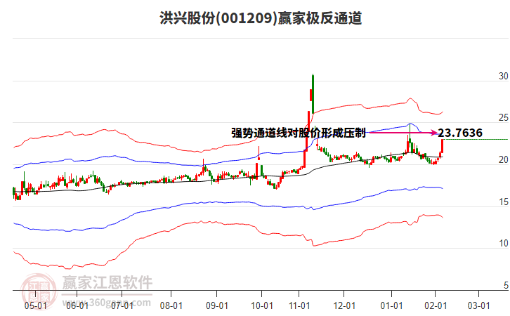 依據(jù)贏家江恩系統(tǒng)趨勢工具極反通道分析判斷洪興股份001209運行在生命線以下弱勢區(qū)域,根據(jù)規(guī)則該股短線輕倉參與,股價跌至弱勢外軌線后波段再結(jié)合其它工具信號建倉。應用口訣是:生命線上強勢走,生命線下難抬頭;紅黃兩條外軌線,壓力支撐顯勢頭。