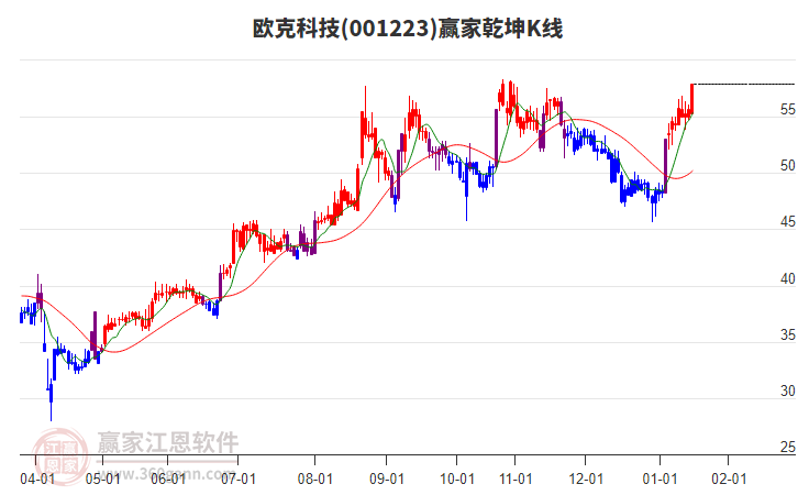 歐克科技漲至老子十二宮上漲結(jié)構(gòu)警戒線上方區(qū)域附近 近17個交易日漲幅30.89%