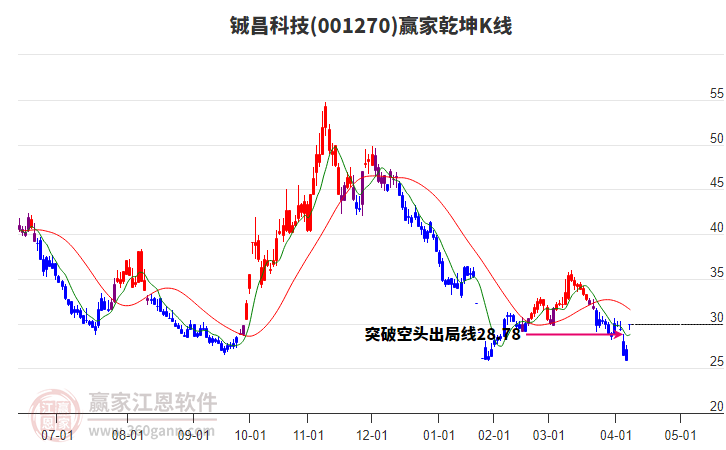 *ST鋮昌(001270)處于贏家江恩多頭主線形態(tài),今日雖重心上移,但短期空頭趨勢未改變,長期發(fā)出江恩筑底信號,屬長期多頭預(yù)警。*ST鋮昌今日跳空低開,截止目前K線為光頭小陽線,但卻是個假陽線,今日呈