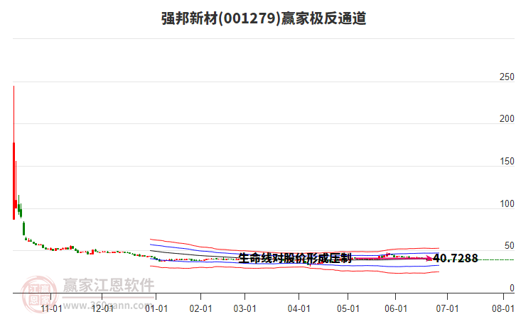 依據(jù)贏家江恩系統(tǒng)趨勢(shì)工具極反通道分析判斷強(qiáng)邦新材001279運(yùn)行在生命線(xiàn)以下弱勢(shì)區(qū)域,根據(jù)規(guī)則該股短線(xiàn)輕倉(cāng)參與,股價(jià)跌至弱勢(shì)外軌線(xiàn)后波段再結(jié)合其它工具信號(hào)建倉(cāng)。應(yīng)用口訣是:生命線(xiàn)上強(qiáng)勢(shì)走,生命線(xiàn)下難抬頭;紅黃兩條外軌線(xiàn),壓力支撐顯勢(shì)頭。