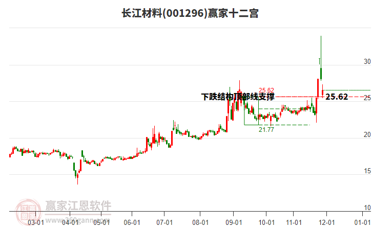 依據(jù)贏家江恩系統(tǒng)趨勢工具極反通道分析判斷長江材料001296運行在生命線以上強勢區(qū)域,根據(jù)規(guī)則該股可短線、波段結合操作;結合物極必反的原理通過分鐘圖做盤中差價,應用口訣是:生命線上強勢走,生命線下難抬頭;紅黃兩條外軌線,壓力支撐顯勢頭。