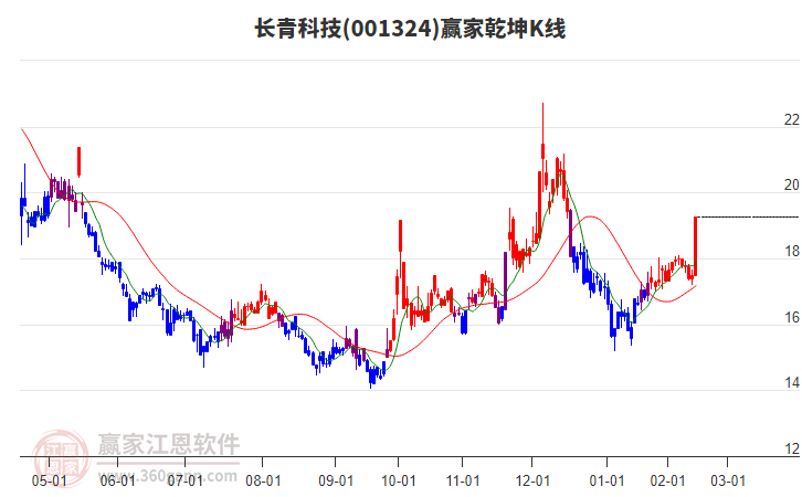 長青科技(001324)處于贏家江恩多頭中期回調(diào)形態(tài),從1月30日形成底分型后持續(xù)上攻,今日突破前高形成初次江恩筑底信號(hào),中長線均在空頭下跌趨勢(shì)中。長青科技截至目前K線為光腳上影中陽線,這種K線的出現(xiàn)