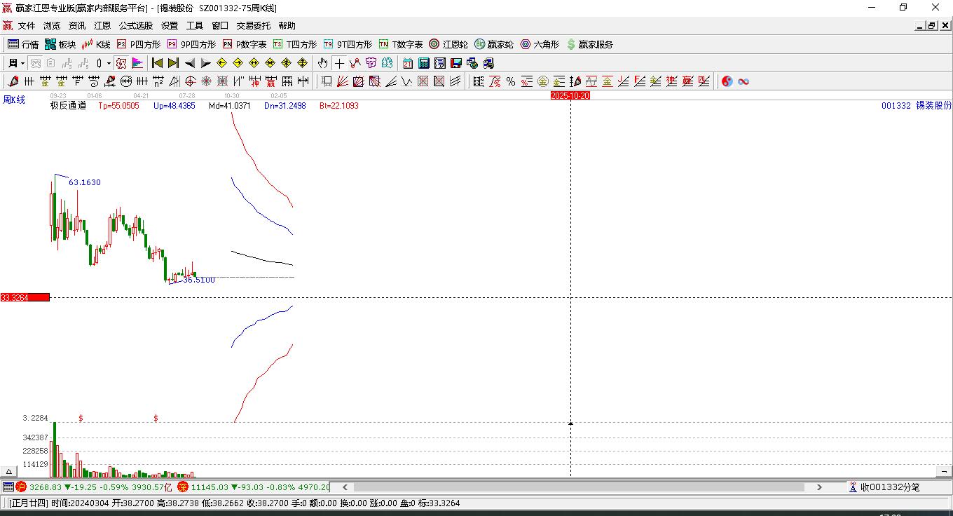依據(jù)贏家江恩極反通道趨勢(shì)工具展示,本周股價(jià)處于生命線上強(qiáng)勢(shì)通道,本周收盤價(jià)56.05,自近期通道內(nèi)高點(diǎn)64.66持續(xù)下跌至本周,到達(dá)生命線44.7505點(diǎn)上方,短期關(guān)注此線支撐,如支撐不破,保持在強(qiáng)勢(shì)通道內(nèi),波段繼續(xù)看多,有望再次挑戰(zhàn)藍(lán)色上軌線。若跌破生命線44.7505,進(jìn)入弱勢(shì)通道,打開下跌空間。