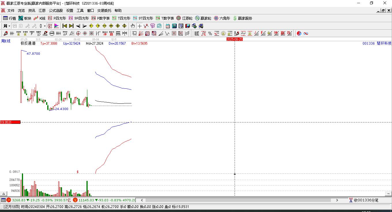 001336楚環(huán)科技處于贏家江恩多頭主線形態(tài),從12月17日形成底分型后持續(xù)上攻,今日突破前高形成初次江恩筑底信號,中長期多頭趨勢依舊保持。001336楚環(huán)科技目前大幅上漲6.18%,所屬板塊工業(yè)機械