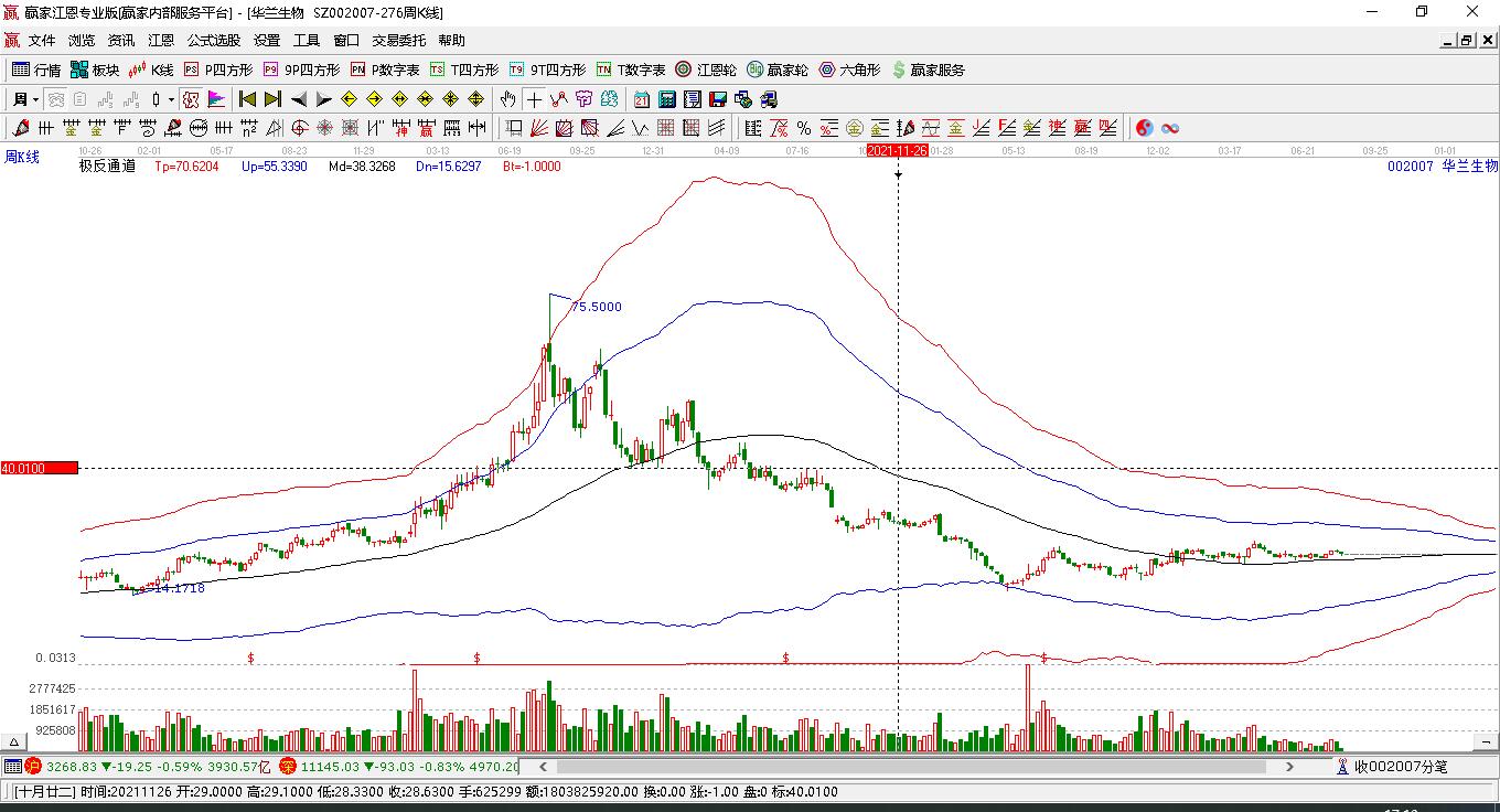 華蘭生物(002007)處于贏家江恩空頭主線形態(tài),12月26日發(fā)出江恩筑底信號(hào)后,經(jīng)過(guò)46日,今日形成短期筑頂信號(hào),短期多頭趨勢(shì)已被破壞,中期多頭反彈趨勢(shì)延續(xù),但長(zhǎng)期處于下跌中。華蘭生物(002007