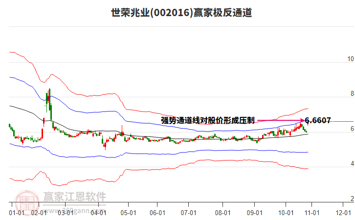 當(dāng)天世榮兆業(yè)最高價(jià)6.14挑戰(zhàn)了贏家極反通道工具生命線,受到生命線強(qiáng)力壓制,最終收盤停留在在生命線與藍(lán)色下軌線上方的弱勢(shì)通道區(qū)域。世榮兆業(yè)近10個(gè)交易日漲幅4.08%。