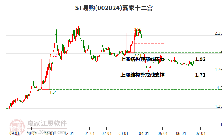 ST易購(002024)目前漲停,與所屬行業(yè)概念下股票形成聯(lián)動效應。ST易購(002024)截止目前突破極反通道生命線,根據(jù)贏家江恩極反通道趨勢工具展示,上方壓力位1.8966,下方支撐位1.7867