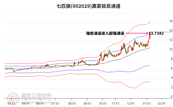 七匹狼目前漲停,與所屬行業(yè)概念下股票形成聯(lián)動效應(yīng)。七匹狼截止目前突破極反通道強勢通道線,根據(jù)贏家江恩極反通道趨勢工具展示,上方壓力位16.3273,下方支撐位13.7342。七匹狼今日低開,截止目前漲