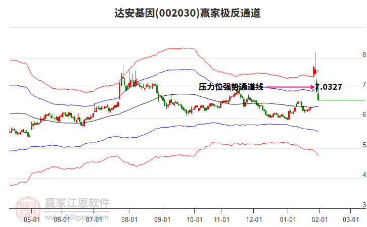 達(dá)安基因今日漲停,突破極反通道強(qiáng)勢(shì)通道線