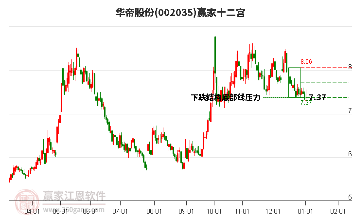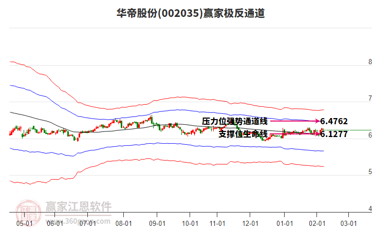 依據(jù)贏家江恩系統(tǒng)趨勢工具極反通道分析判斷華帝股份002035運(yùn)行在生命線以下弱勢區(qū)域,根據(jù)規(guī)則該股短線輕倉參與,股價(jià)跌至弱勢外軌線后波段再結(jié)合其它工具信號(hào)建倉。應(yīng)用口訣是:生命線上強(qiáng)勢走,生命線下難抬頭;紅黃兩條外軌線,壓力支撐顯勢頭。