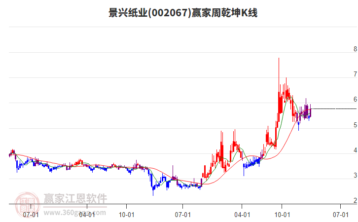 景興紙業(yè)002067低開(kāi)收陽(yáng)線,進(jìn)入乾坤K線紫色多空爭(zhēng)奪期