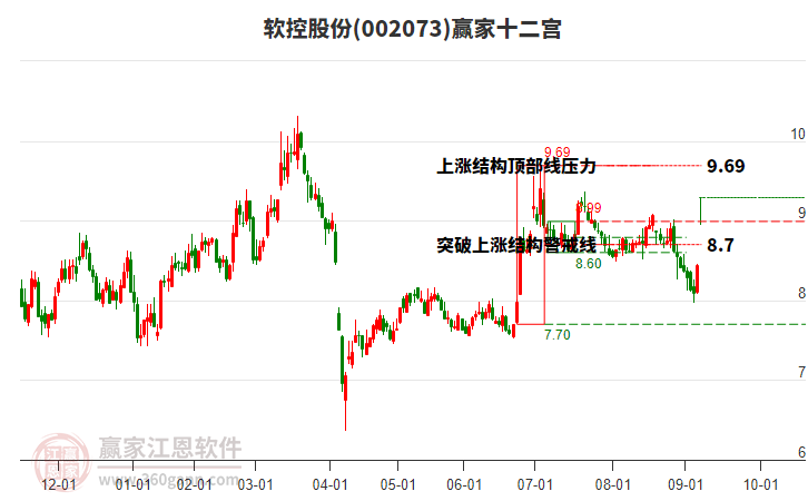 軟控股份(002073)根據(jù)贏家江恩極反通道趨勢工具展示,上方壓力位9.7963,下方支撐位8.7201。軟控股份(002073)處于贏家江恩多頭次主線形態(tài),從11月19日形成頂分型后持續(xù)下跌,重心下