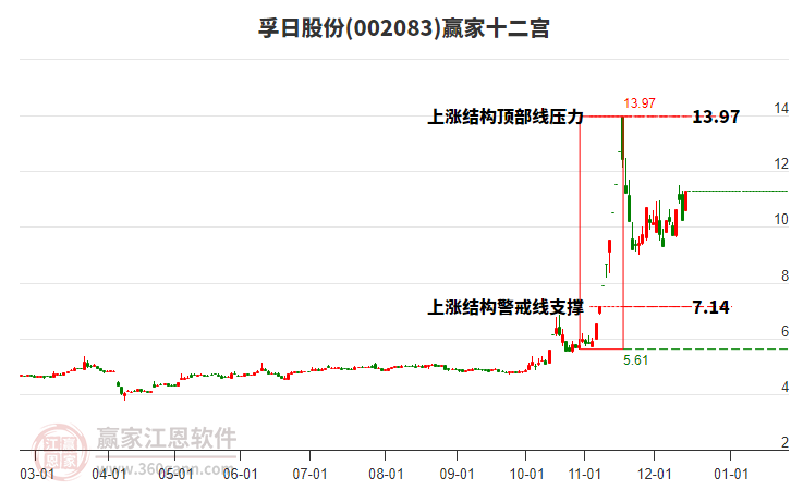 002083孚日股份處于贏家江恩多頭次主線形態(tài),12月8日發(fā)出江恩筑底信號后,經(jīng)過65日,今日形成短期筑頂信號,短期多頭趨勢已被破壞,中期雖然處于回調(diào)中,但長期多頭趨勢延續(xù)。002083孚日股份根據(jù)贏