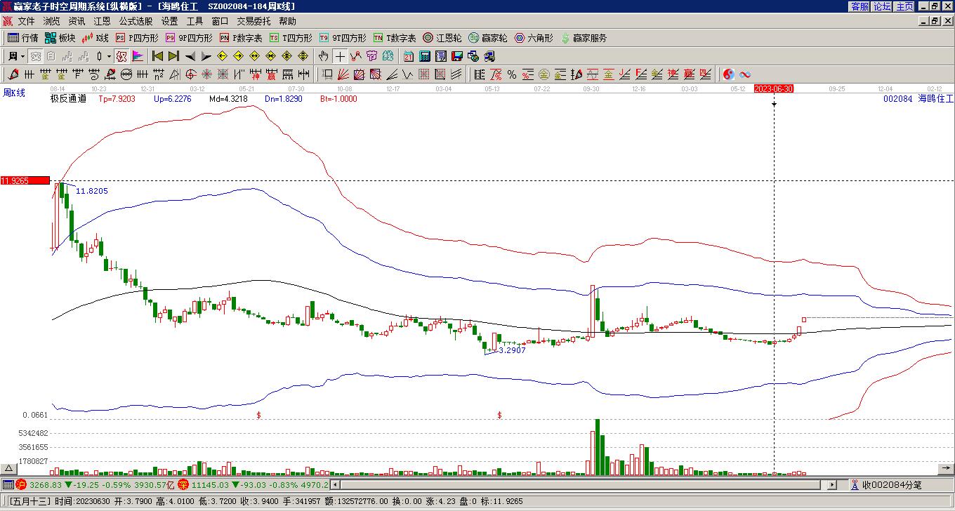 002084海鷗住工根據(jù)贏家江恩極反通道趨勢工具展示,上方壓力位4.1811,下方支撐位3.0998。002084海鷗住工處于贏家江恩多頭主線形態(tài),11月19日發(fā)出江恩筑頂信號后,經(jīng)過48日,今日再次