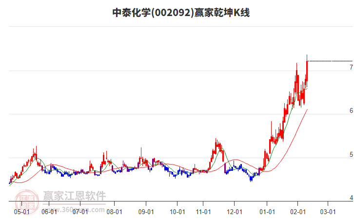 目前002092中泰化學(xué)最高價7.66上穿了贏家極反通道工具上方紅色外軌線,受到上方紅色外軌線強(qiáng)力壓制,最終收盤停留在在上方紅色外軌線與藍(lán)色外軌線上方的超強(qiáng)通道區(qū)域。002092中泰化學(xué)近10個交易日