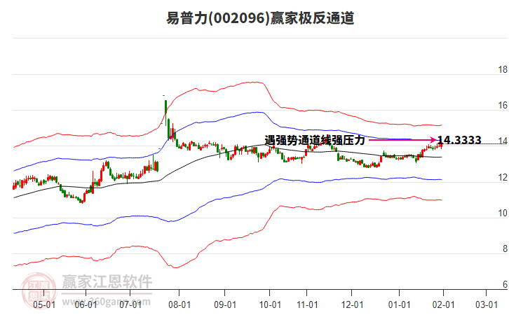 依據(jù)贏家江恩系統(tǒng)趨勢工具極反通道分析判斷易普力002096運(yùn)行在生命線以下弱勢區(qū)域,根據(jù)規(guī)則該股短線輕倉參與,股價(jià)跌至弱勢外軌線后波段再結(jié)合其它工具信號建倉。應(yīng)用口訣是:生命線上強(qiáng)勢走,生命線下難抬頭;紅黃兩條外軌線,壓力支撐顯勢頭。