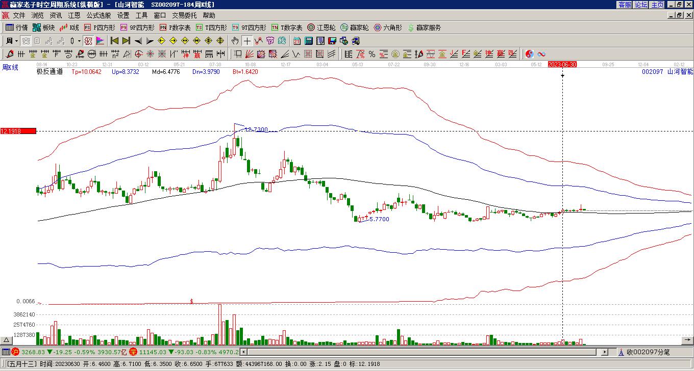 當天山河智能002097挑戰(zhàn)生命線 以上影小陽線收盤