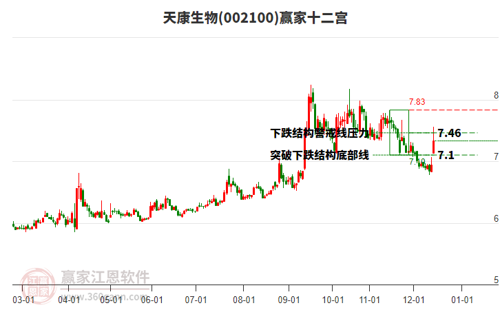 目前002100天康生物以光腳上影小陽線收盤,近期時間窗口為:12月17日