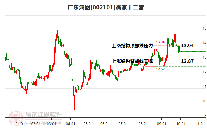 2月13日股價處于2025年8月22日形成的上漲結(jié)構(gòu)底部線12.52下方,今日股價微漲0.73%,以上影小陽線收盤。目前以13.0-11.88價格區(qū)間進行上下震蕩。依據(jù)贏家十二宮多空能量守恒規(guī)則,若多方能量進行反攻,突破站穩(wěn)底部線,則有望向上在警戒線位置尋找新的多空能量平衡位。如不能突破站穩(wěn),后市有可能會再次下探。