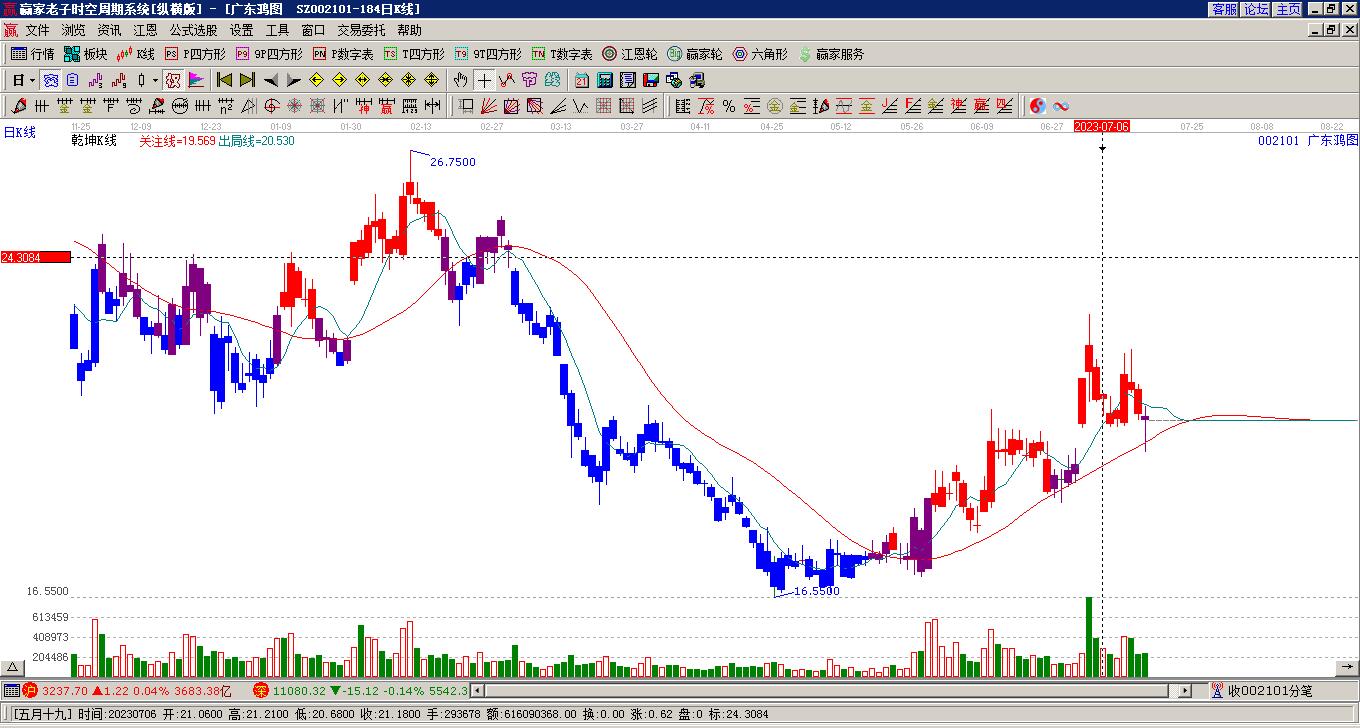 依據(jù)贏家江恩乾坤K線工具展示,目前股價處于藍(lán)色區(qū)域,本周K線以陽線收盤,周K線收于出局線下方。近期波段低點(diǎn)為2月6日11.98點(diǎn),若跌破前期低點(diǎn)11.98,將形成短期下行趨勢,如短期股價快速進(jìn)入紅色區(qū)域,有望波段走強(qiáng)。