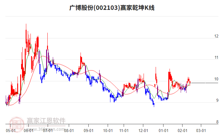依據(jù)贏家江恩系統(tǒng)趨勢(shì)工具極反通道分析判斷廣博股份002103運(yùn)行在生命線以上強(qiáng)勢(shì)區(qū)域,根據(jù)規(guī)則該股可短線、波段結(jié)合操作;結(jié)合物極必反的原理通過分鐘圖做盤中差價(jià),應(yīng)用口訣是:生命線上強(qiáng)勢(shì)走,生命線下難抬頭;紅黃兩條外軌線,壓力支撐顯勢(shì)頭。