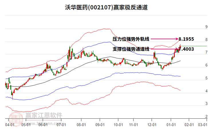 002107沃華醫(yī)藥根據(jù)贏家江恩極反通道趨勢工具展示,上方壓力位7.8052,下方支撐位7.1222。002107沃華醫(yī)藥處于贏家江恩多頭主線形態(tài),今日重心上移,短期持續(xù)上漲,形成筑底信號,從12月1