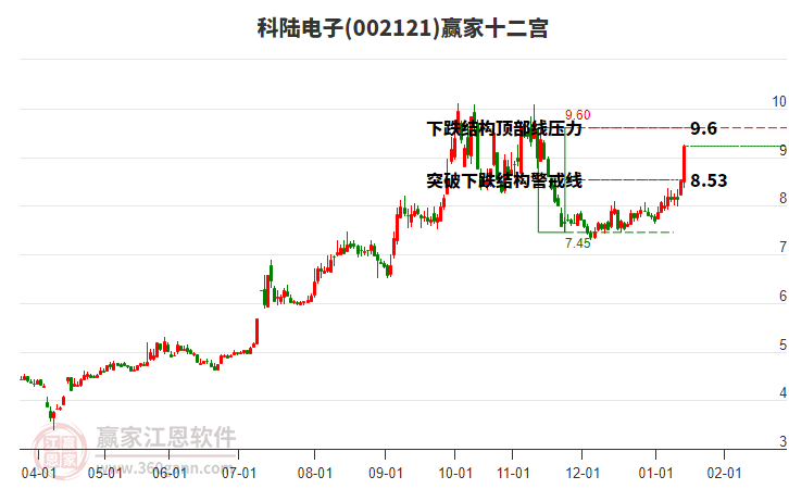 002121科陸電子根據(jù)贏家江恩極反通道趨勢工具展示,上方壓力位10.5752,下方支撐位9.413。002121科陸電子處于贏家江恩多頭主線形態(tài),今日重心上移,短期持續(xù)上漲,從12月4日形成中期底分