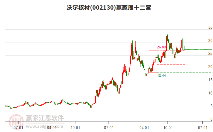 沃爾核材(002130)處于贏家江恩多頭次主線形態(tài),從1月26日形成頂分型后持續(xù)下跌,重心下移,今日跌破前低形成短期初次筑頂信號,短期多頭趨勢已被破壞,中期多頭趨勢延續(xù),但長期處于回調(diào)中。沃爾核材(0