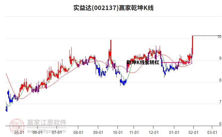 實(shí)益達(dá)今日漲停,進(jìn)入乾坤K線紅色上漲趨勢(shì)