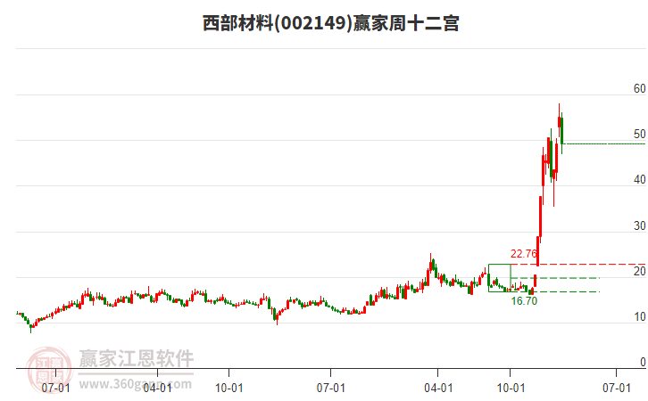 002149西部材料目前大幅上漲9.49%,走出獨(dú)立行情。002149西部材料截止目前突破黃金價(jià)格延伸線工具壓力位53.48元,根據(jù)贏家江恩黃金價(jià)格延伸線工具展示,上方第一壓力位54.25,第二壓力位