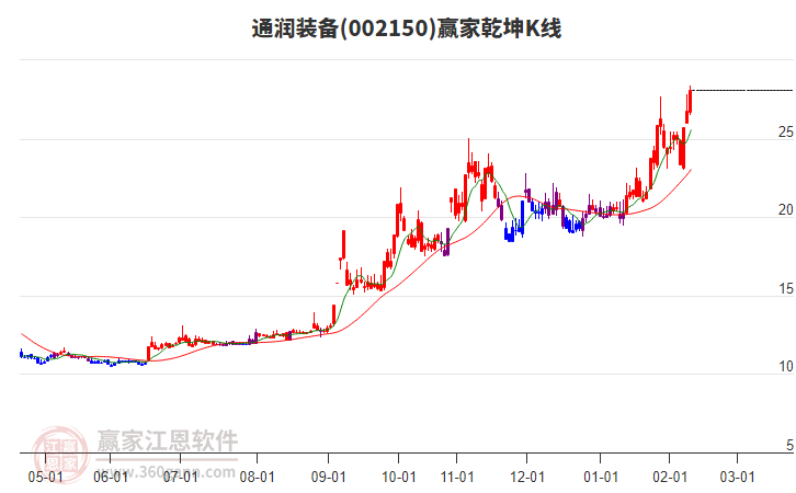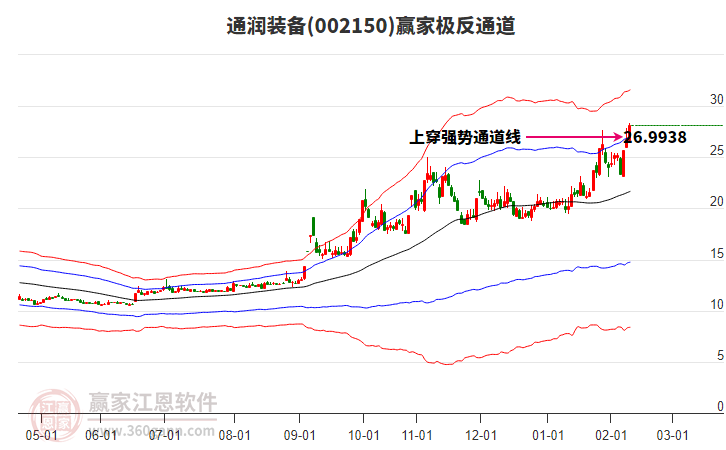 2月9日通潤裝備002150最高價27.82上穿了贏家極反通道工具藍色外軌線,受到藍色外軌線強力壓制,最終收盤停留在在藍色外軌線與生命線上方的強勢通道區(qū)域。通潤裝備002150近10個交易日漲幅13.