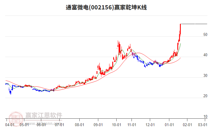 通富微電(002156)低開收漲停,突破強勢外軌線后延續(xù)上漲趨勢