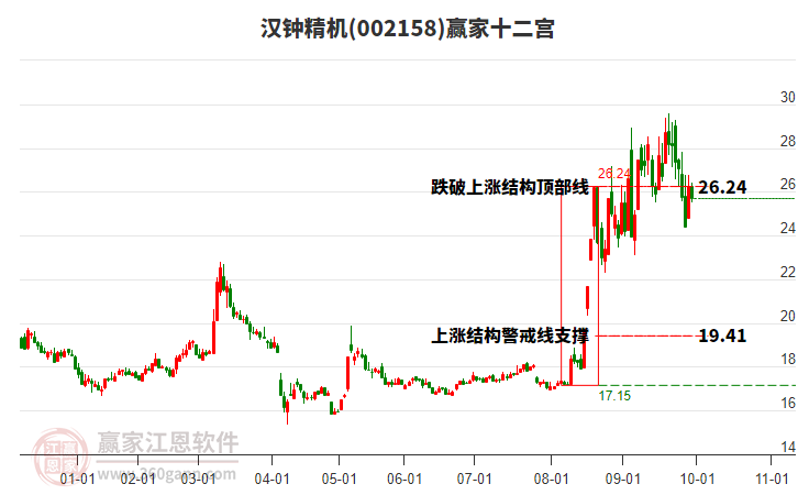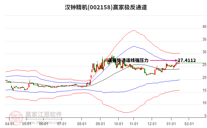 依據(jù)贏家江恩系統(tǒng)趨勢工具極反通道分析判斷漢鐘精機(jī)002158運行在生命線以下弱勢區(qū)域,根據(jù)規(guī)則該股短線輕倉參與,股價跌至弱勢外軌線后波段再結(jié)合其它工具信號建倉。應(yīng)用口訣是:生命線上強(qiáng)勢走,生命線下難抬頭;紅黃兩條外軌線,壓力支撐顯勢頭。