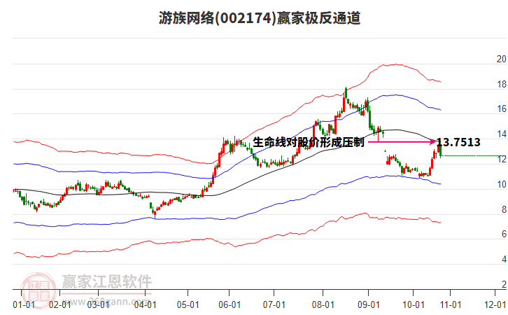 游族網(wǎng)絡(luò)處于贏家江恩多頭次主線形態(tài),從1月13日形成頂分型后持續(xù)下跌,重心下移,今日跌破前低形成短期初次筑頂信號(hào),短期多頭趨勢(shì)已被破壞,中長(zhǎng)期多頭趨勢(shì)依舊保持。游族網(wǎng)絡(luò)根據(jù)贏家江恩極反通道趨勢(shì)工具展示