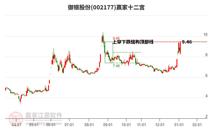 御銀股份(002177)以9.48元漲停,到達黃金價格分割工具壓力位9.57元下