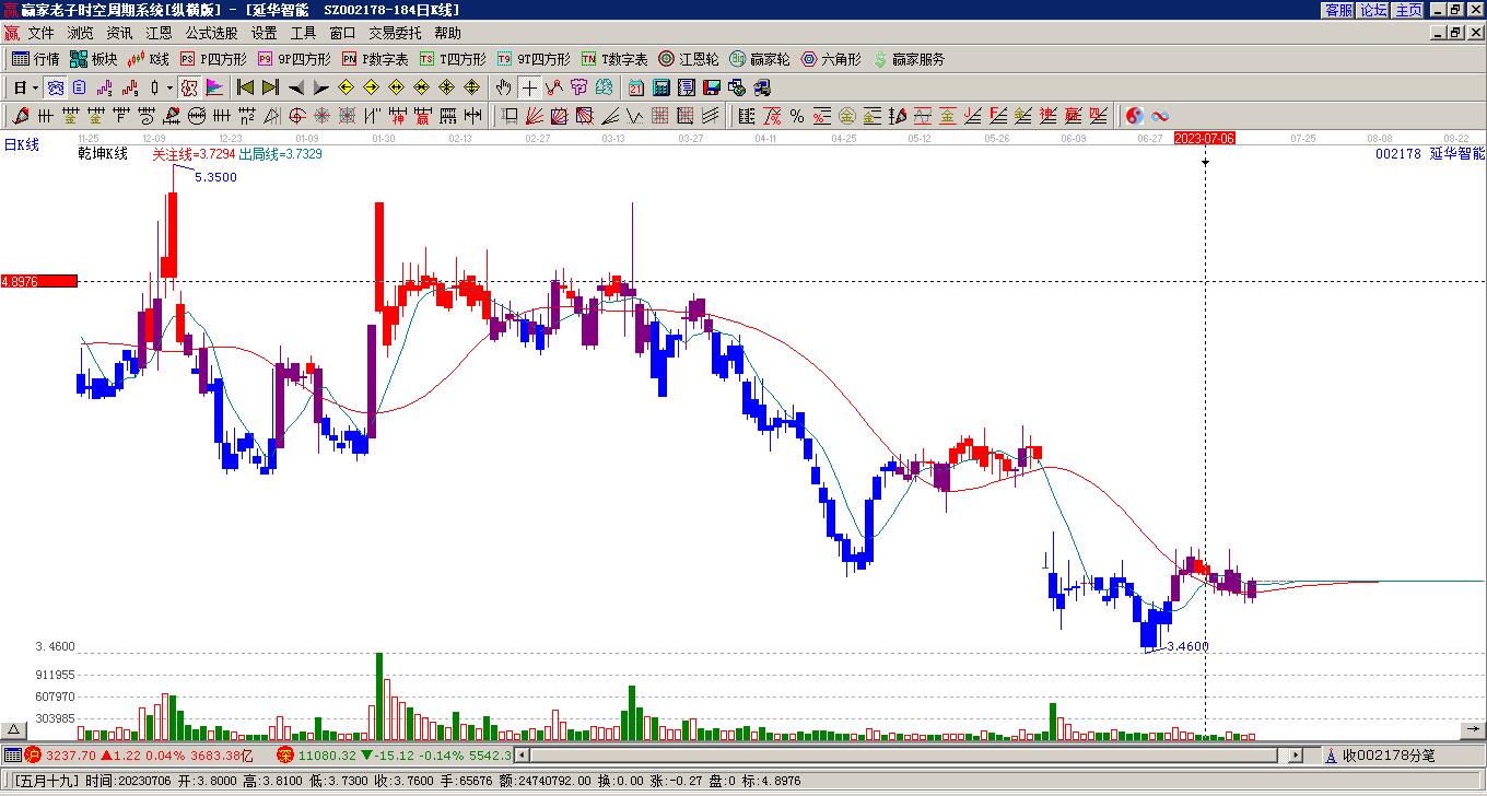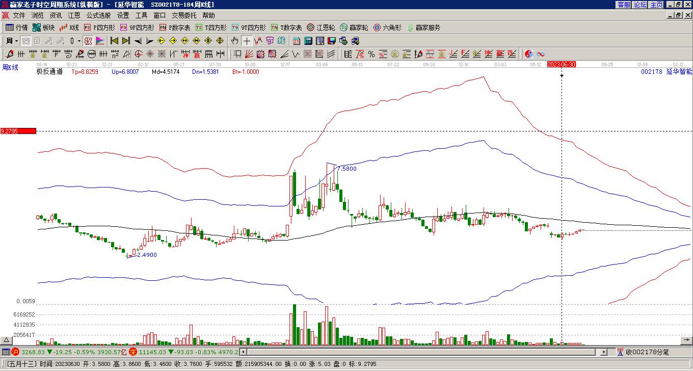 延華智能根據(jù)贏家江恩極反通道趨勢工具展示,上方壓力位6.7742,下方支撐位5.6079。延華智能處于贏家江恩空頭主線形態(tài),今日重心下移,形成短期筑頂信號,6月30日發(fā)出中期江恩筑底信號后,經(jīng)過158