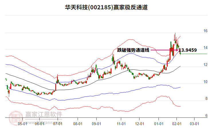 依據(jù)贏家江恩系統(tǒng)趨勢工具極反通道分析判斷華天科技002185運行在生命線以下弱勢區(qū)域,根據(jù)規(guī)則該股短線輕倉參與,股價跌至弱勢外軌線后波段再結(jié)合其它工具信號建倉。應用口訣是:生命線上強勢走,生命線下難抬頭;紅黃兩條外軌線,壓力支撐顯勢頭。