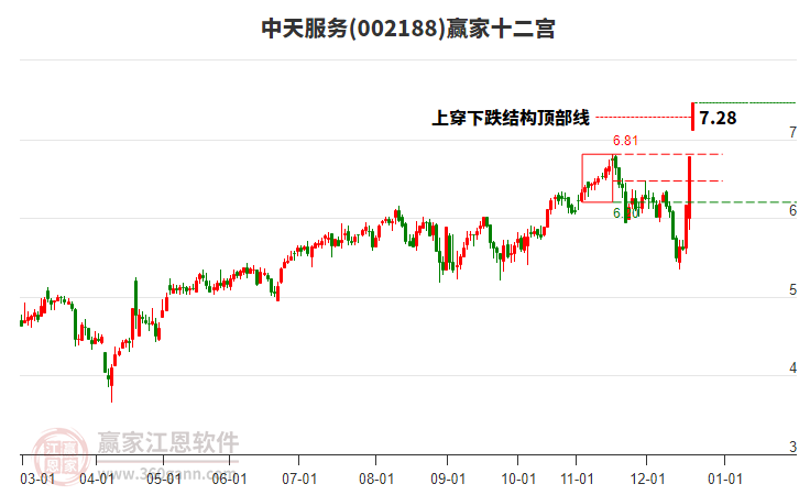 中天服務(wù)漲至老子十二宮下跌結(jié)構(gòu)頂部紅色阻力線上方區(qū)域內(nèi) 近4個(gè)交易日漲幅32.45%