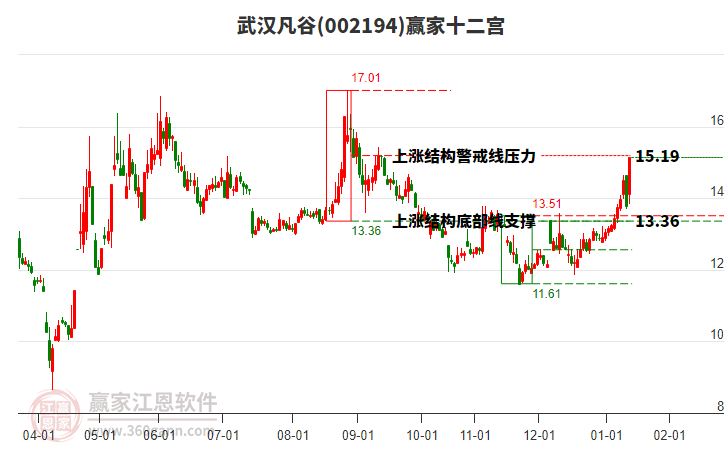 002194武漢凡谷根據(jù)贏家江恩極反通道趨勢工具展示,上方壓力位13.0922,下方支撐位10.3698。002194武漢凡谷處于贏家江恩多頭次主線形態(tài),12月29日發(fā)出江恩筑底信號后,經(jīng)過45日,今