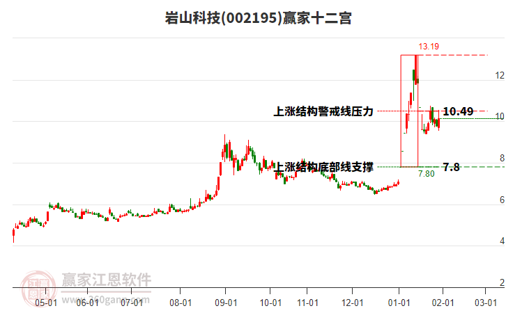 該股2月12日處在2026年1月15日形成的上漲結(jié)構(gòu)警戒線與底部線之間。警戒線10.49對(duì)當(dāng)前股價(jià)形成壓力。依據(jù)贏家十二宮多空能量守恒規(guī)則,上漲結(jié)構(gòu)警戒線附近容易形成多空能量爭奪區(qū)域。若股價(jià)突破站穩(wěn)警戒線,打破多空能量平衡,多方能量主導(dǎo)上攻,上方多空能量平衡位關(guān)注上漲結(jié)構(gòu)頂部線13.19。