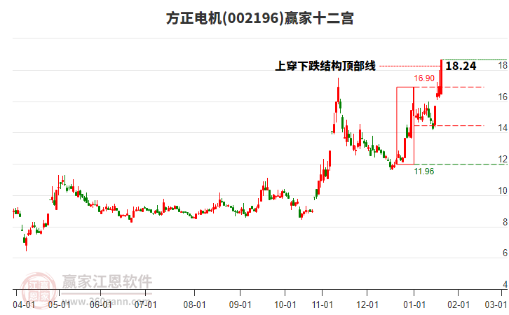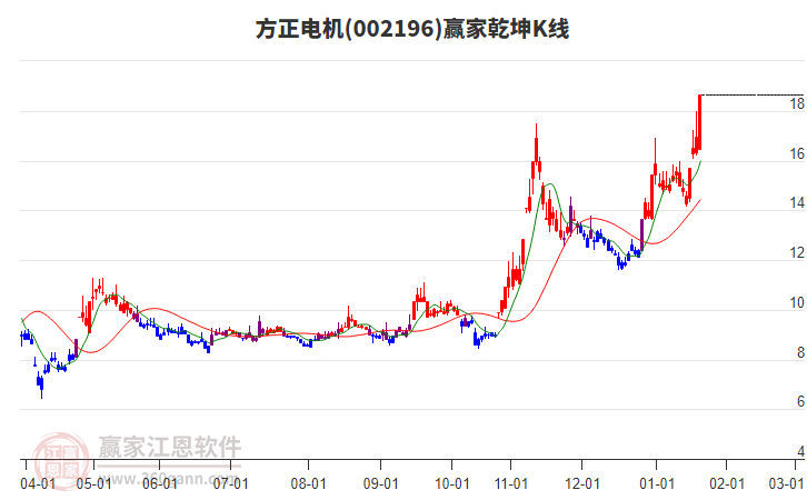 方正電機(jī)處于贏家江恩多頭主線形態(tài),從2月6日形成底分型后持續(xù)上攻,今日突破前高形成初次江恩筑底信號(hào),中期雖然處于回調(diào)中,但長(zhǎng)期多頭趨勢(shì)延續(xù)。方正電機(jī)根據(jù)贏家江恩極反通道趨勢(shì)工具展示,上方壓力位18.8