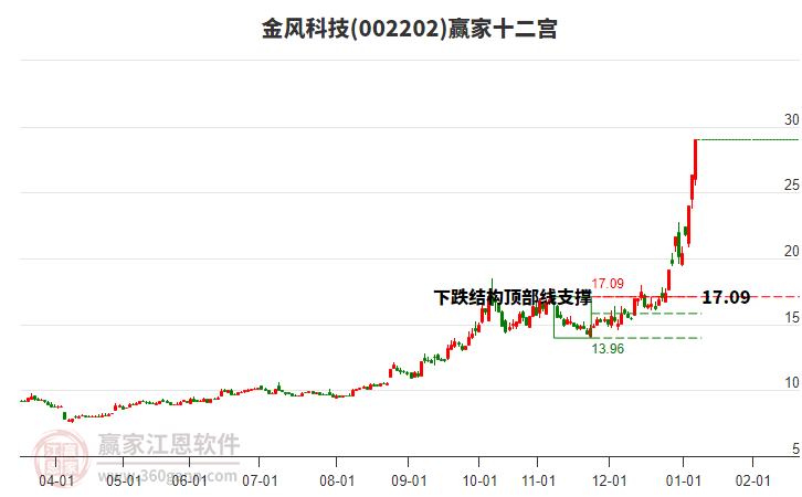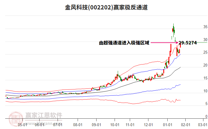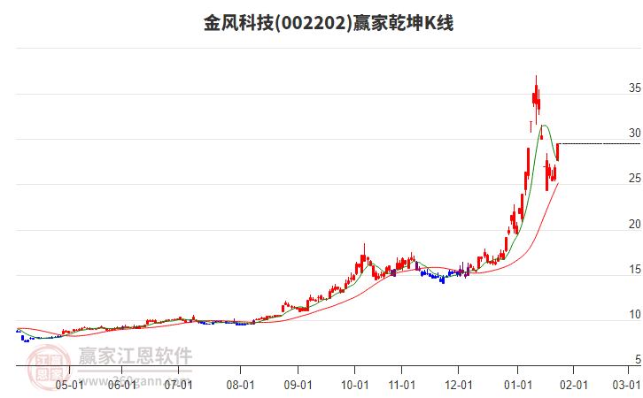 002202金風(fēng)科技根據(jù)贏家江恩極反通道趨勢(shì)工具展示,上方壓力位27.9381,下方支撐位22.0417。002202金風(fēng)科技處于贏家江恩多頭主線形態(tài),1月29日發(fā)出江恩筑頂信號(hào)后,經(jīng)過(guò)6日,今日再次