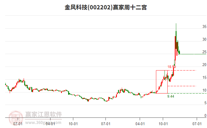金風(fēng)科技今天股價(jià)突破江恩輪中輪內(nèi)循環(huán)重要度數(shù):270度 近4個(gè)交易日漲幅6.79%