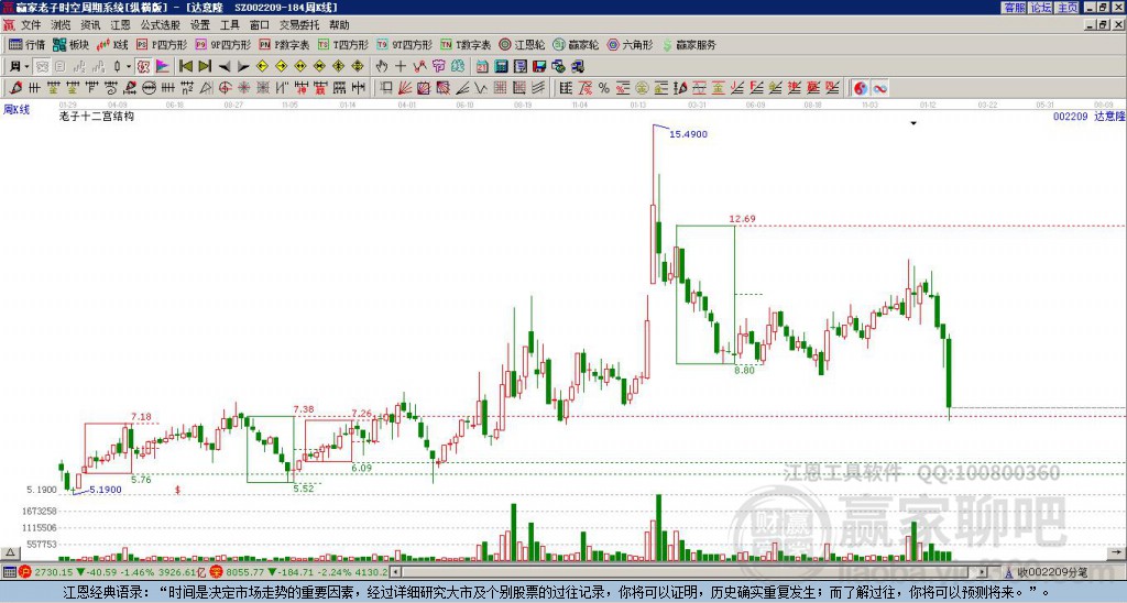 002209達(dá)意隆處于贏家江恩多頭次主線形態(tài),從1月23日形成頂分型后持續(xù)下跌,重心下移,今日跌破前低形成短期初次筑頂信號(hào),短期多頭趨勢已被破壞,中長期目前都處于回調(diào)中。002209達(dá)意隆根據(jù)贏家江恩